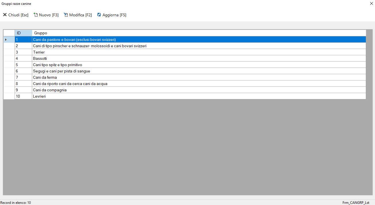 L'elenco è basato sul database dell'ENCI (Ente Nazionale Cinofilia Italiana)
